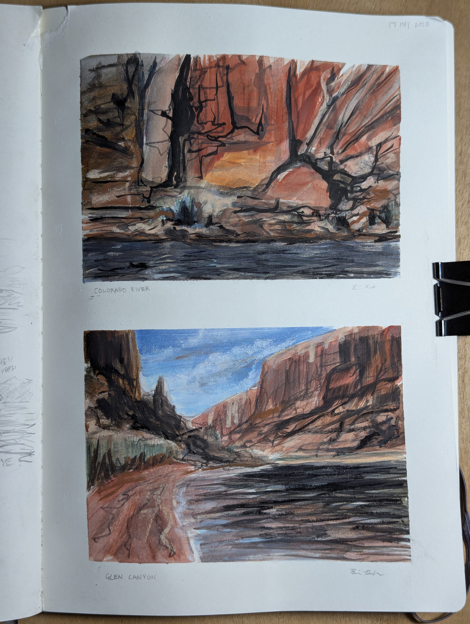 Quick studies in acrylic taken after kayaking down the Colorado River through Glen Canyon in Arizona. 2025.