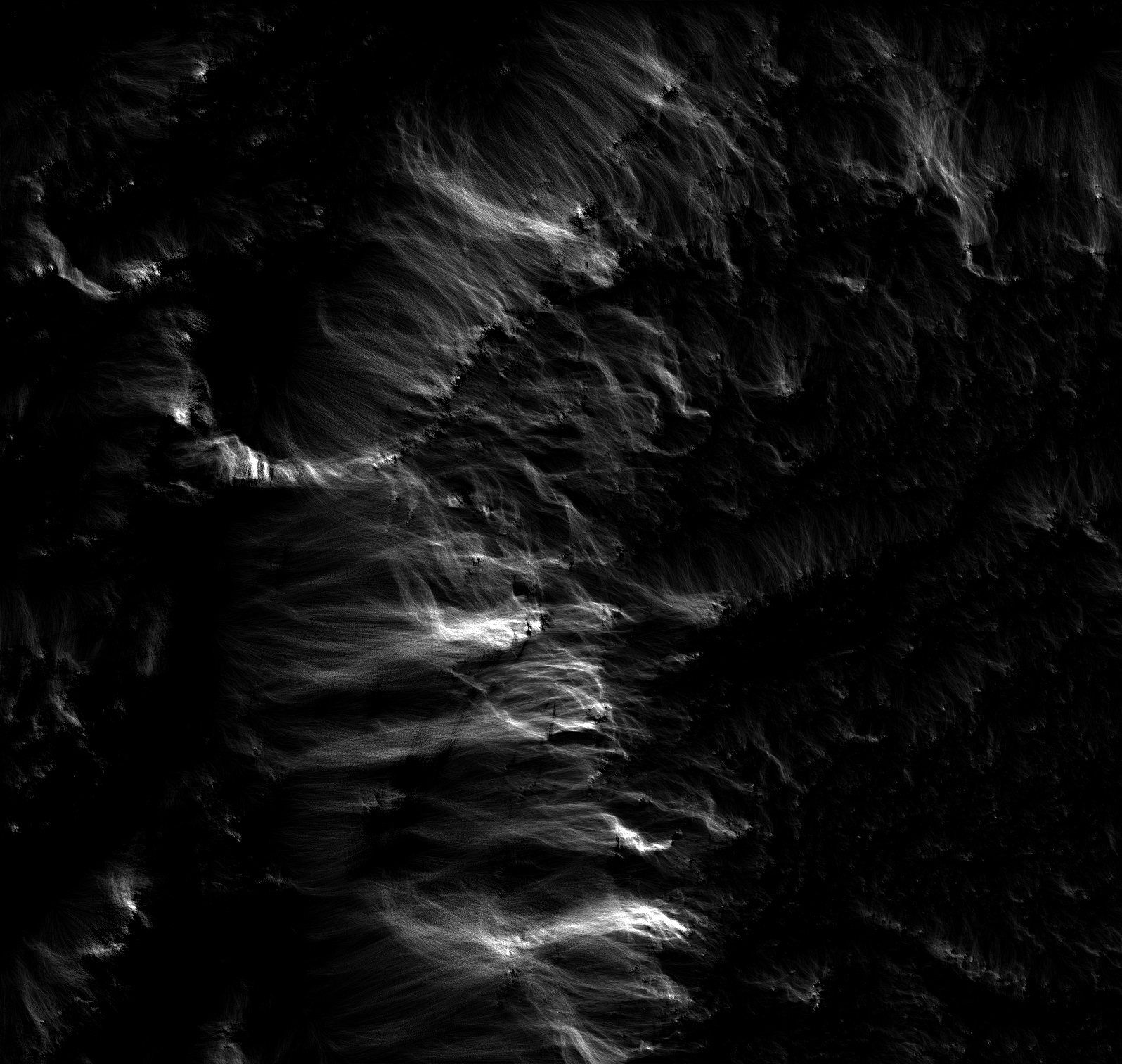 Generated by simulating particle movement as influenced by a simulated environment (mathematical and/or derived from a distinct entity).