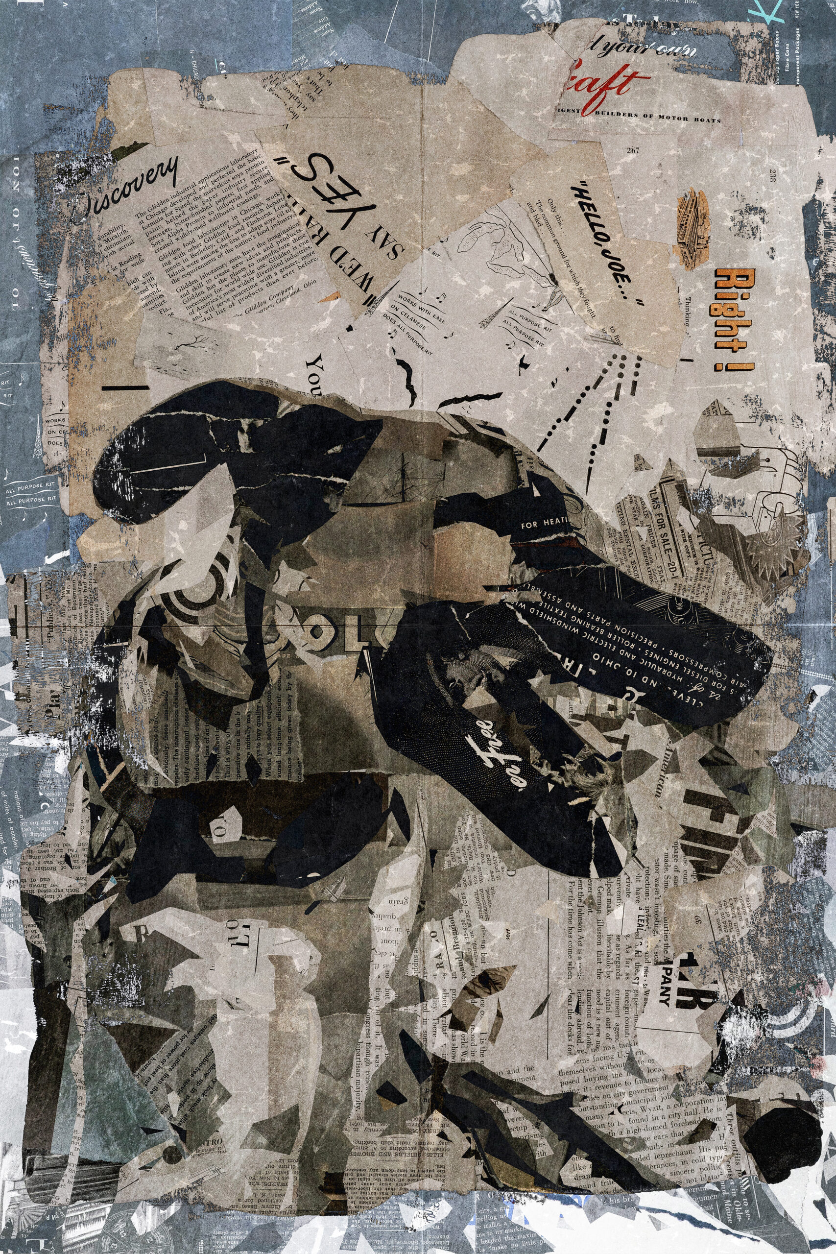 Same collage idea, cutting value from original photograph and combining with collage paper texture from: https://texturelabs.org/