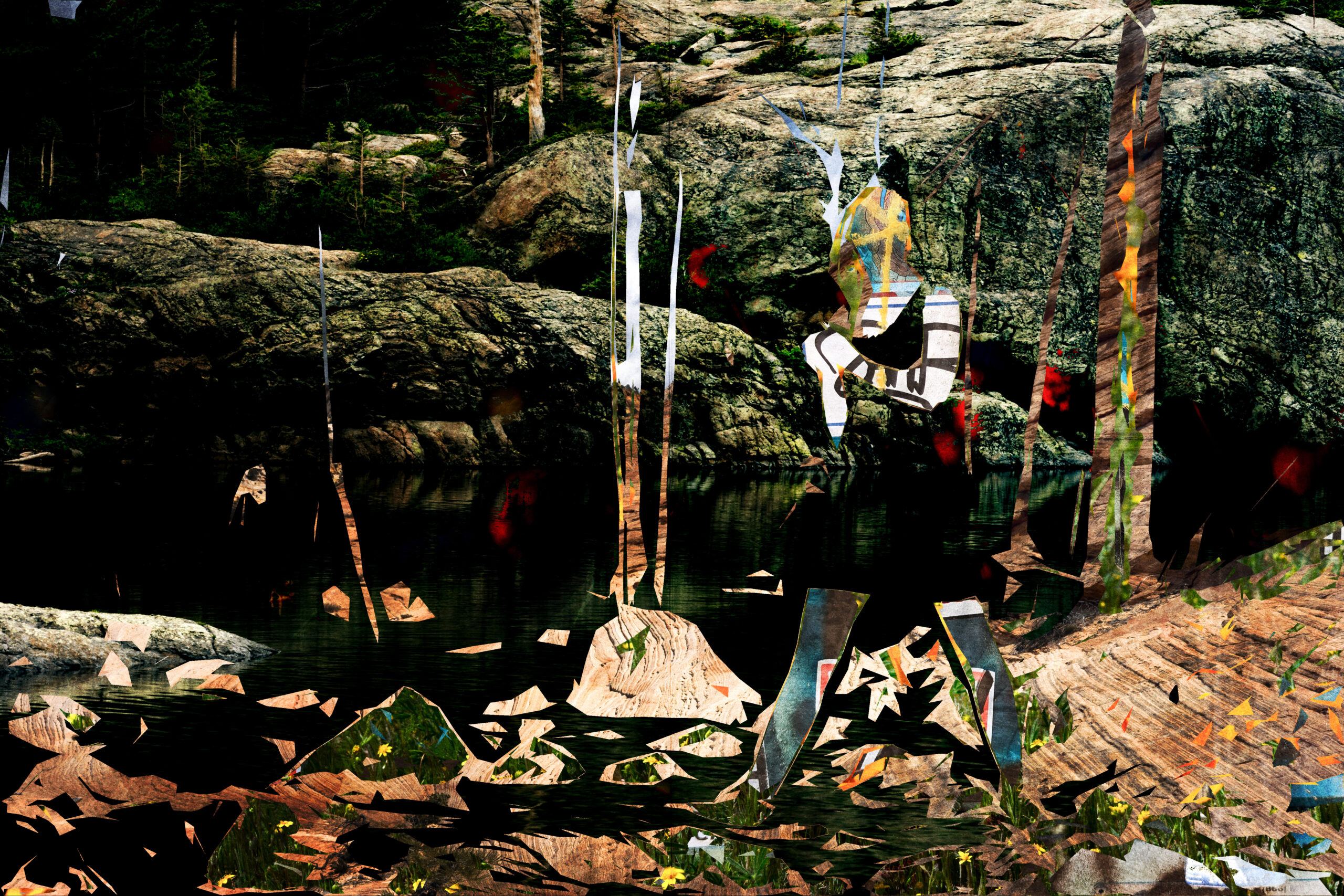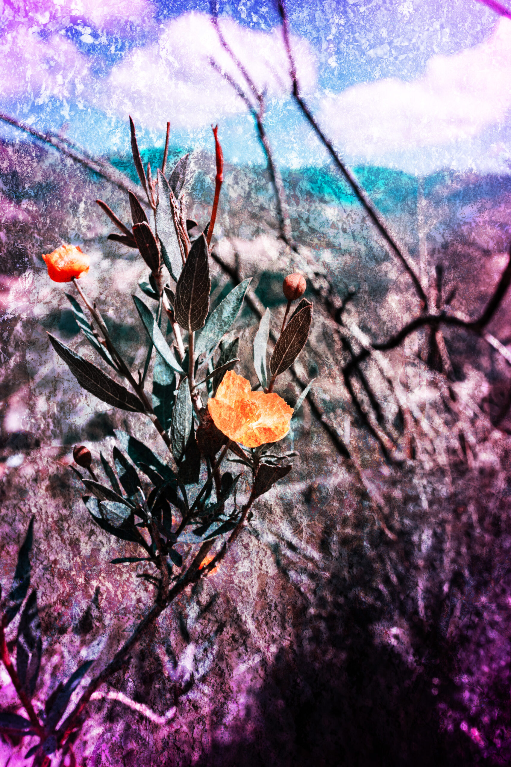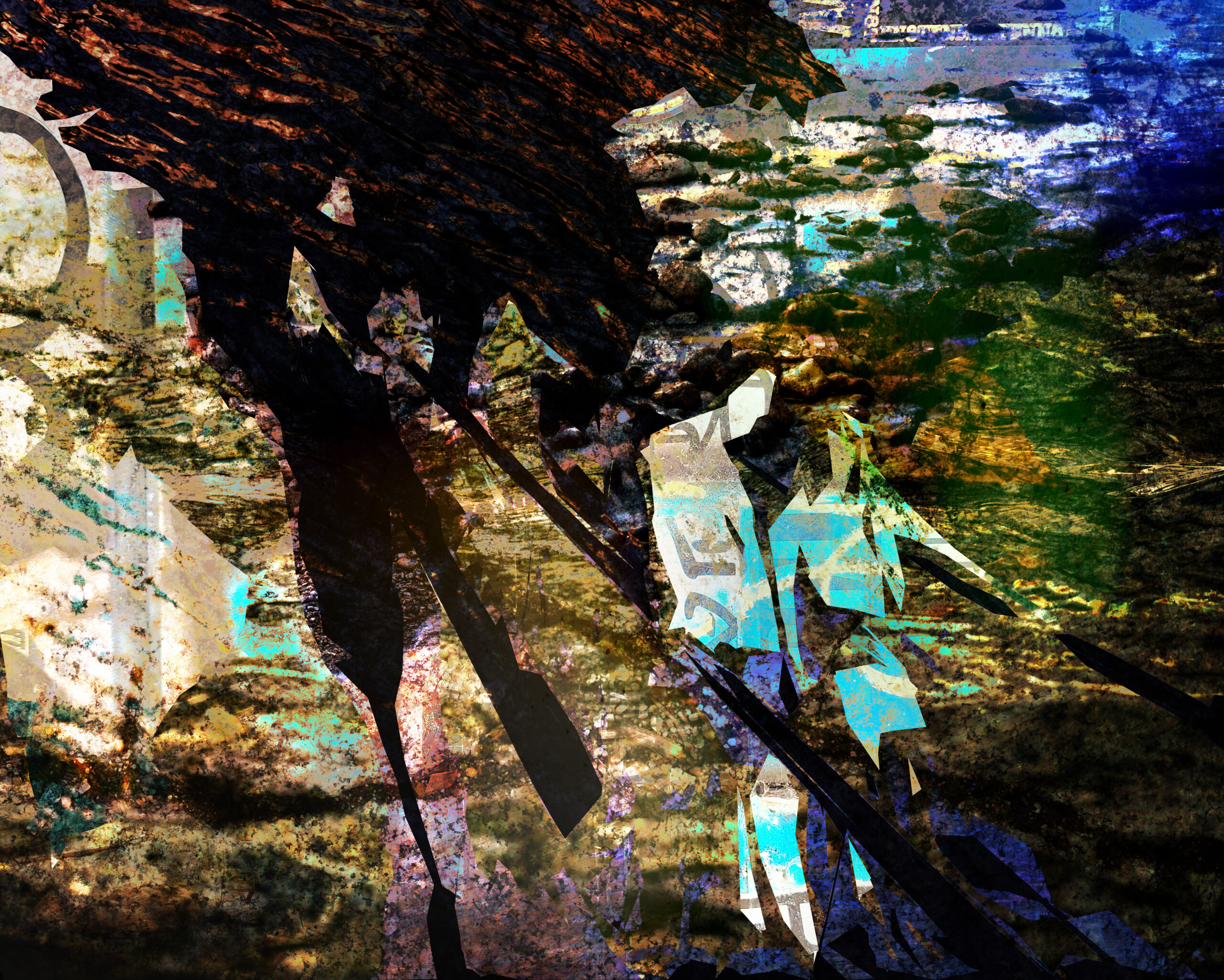 Values from original photograph of Emma in Millard Canyon, combined with landscape photographs and found textures.