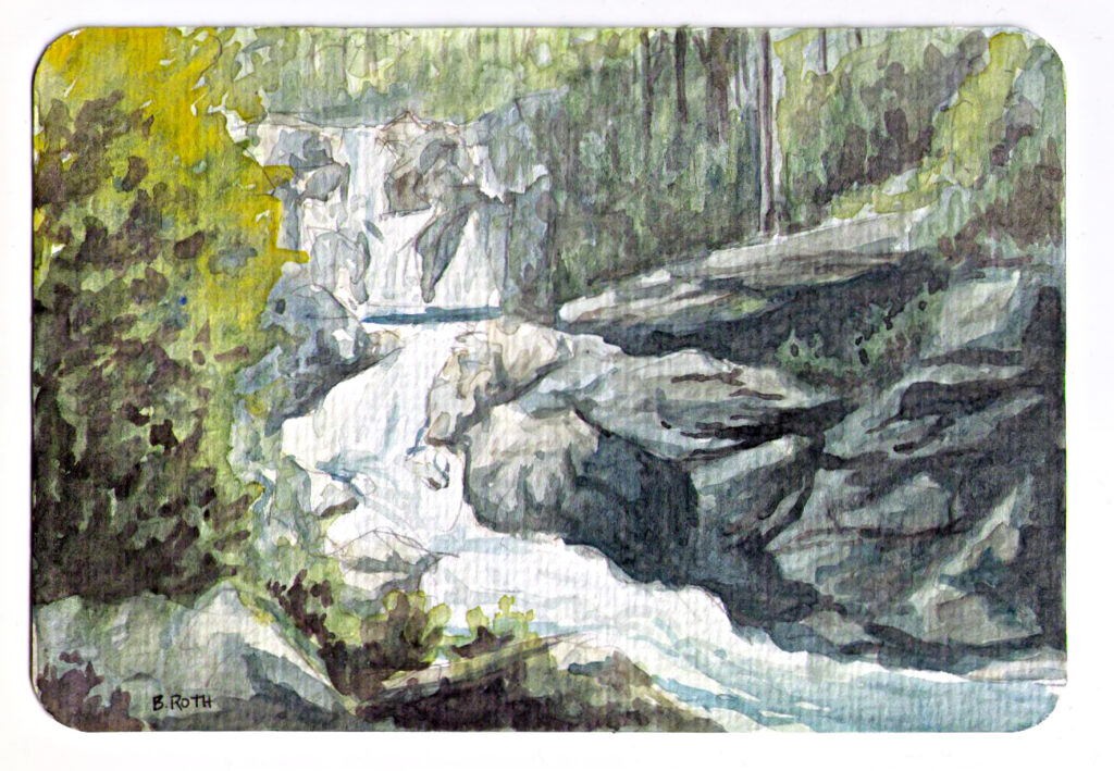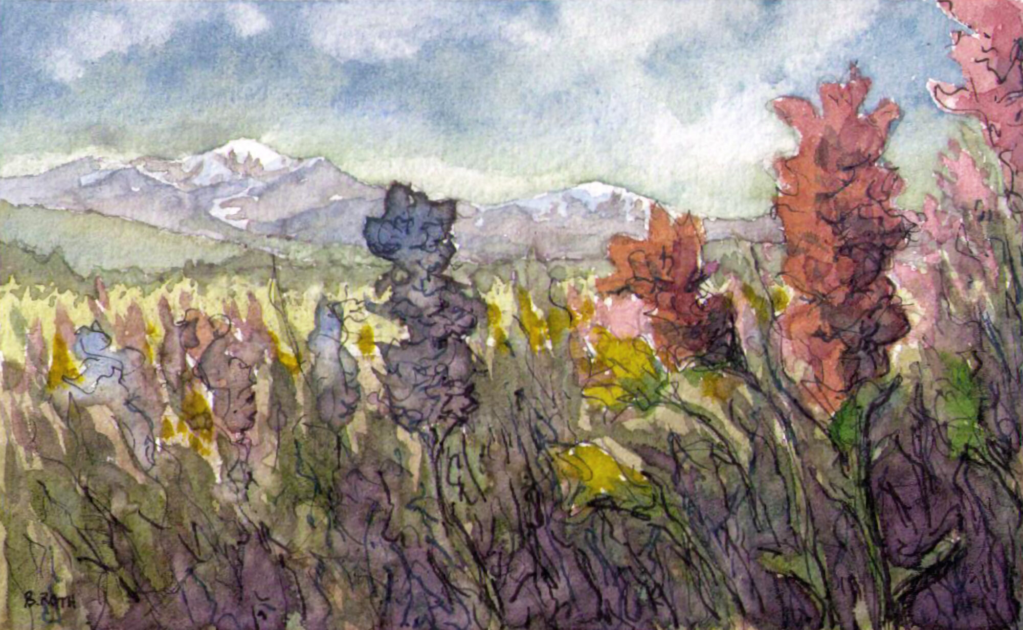 Watercolor Experimenting with the looseness and speed of watercolors to make quick studies of composition and value in landscapes.